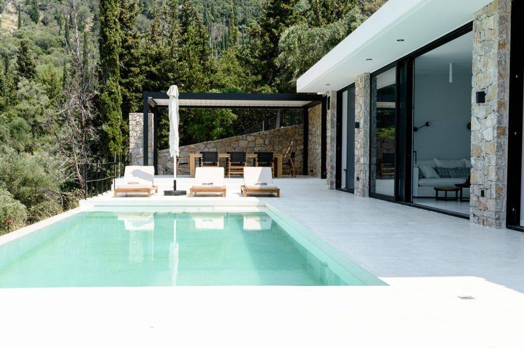 Η συγκεκριμένη βίλα στη Λευκάδα απέκτησε έναν εξωτερικό χώρο σχεδιασμένο για καθημερινή χρήση και χαλάρωση, μέσα από την τοποθέτηση βιοκλιματικής πέργκολας. Η κατασκευή εντάχθηκε διακριτικά στην αρχιτεκτονική του σπιτιού, διατηρώντας καθαρές γραμμές και σεβασμό στο περιβάλλον.
