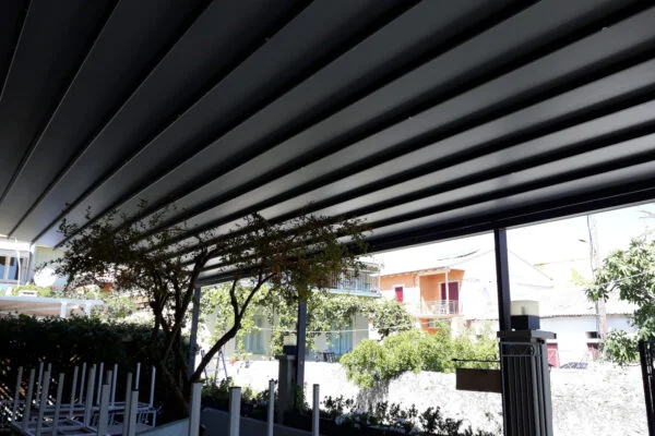 Στο συγκεκριμένο εστιατόριο στη Λευκάδα, η αισθητική υψηλής γαστρονομίας συνδυάζεται με λειτουργικές λύσεις σκίασης που αναβαθμίζουν την εμπειρία του επισκέπτη. Η τοποθέτηση σύγχρονης περγκόλας δημιούργησε έναν κομψό και άνετο εξωτερικό χώρο, ιδανικό για όλες τις ώρες της ημέρας και όλες τις εποχές.